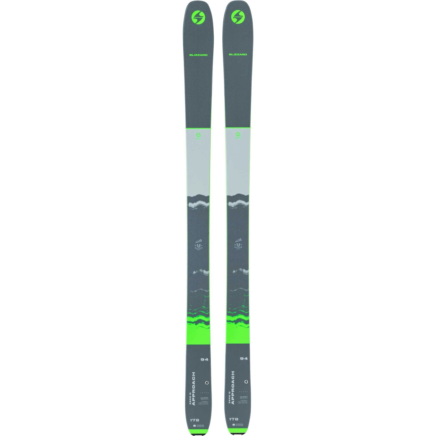 Ski mit einer Kombination aus Seitenwangen unter den Füßen und einer Cap-Konstruktion an Tip und Tail. Diese Kombination kombiniert guten Kantengrip mit einem niedrigen Gewicht bei Drehungen.